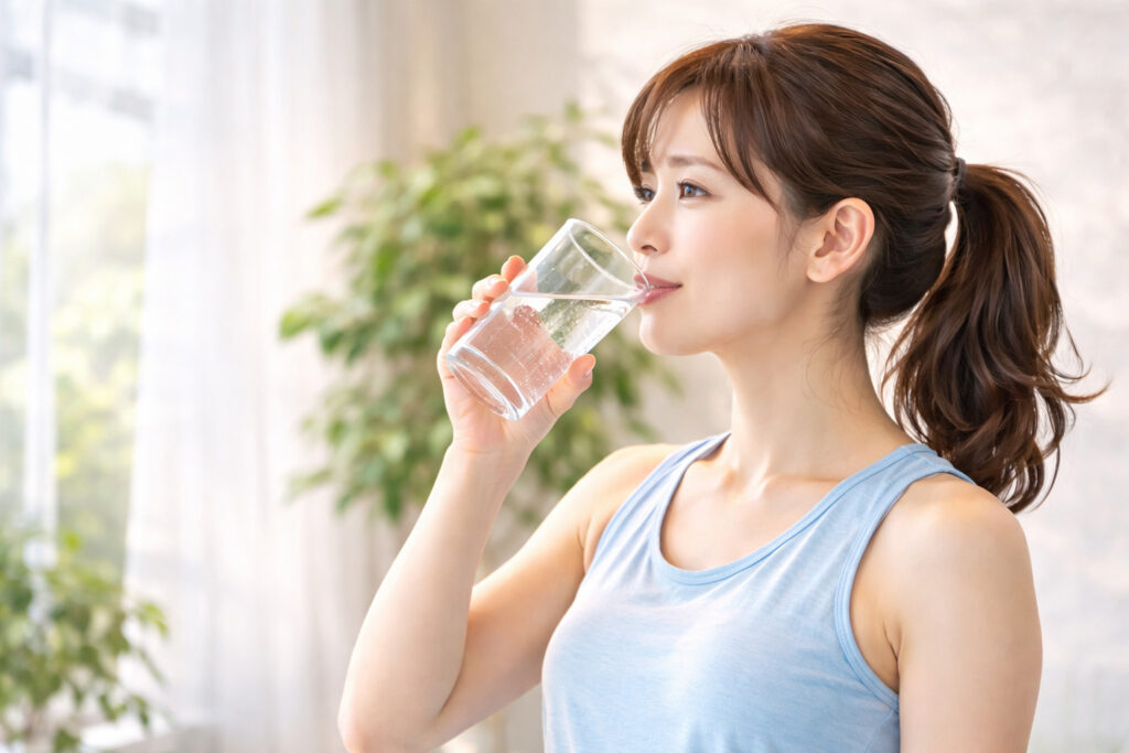 ミネラルウォーターを飲みながら、